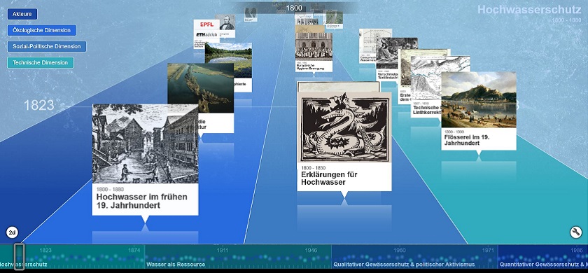 Die Wasser-Timeline veranschaulicht den Wandel des Schweizer Wassermanagements der letzten 200 Jahre in Form einer virtuellen Zeitschiene.